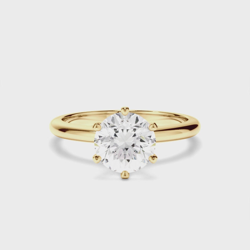 This timeless custom-made round brilliant cut diamond solitaire engagement ring, made with your choice of diamond centre stone, features a 6-claw setting and set in a classic half round band. Exuding fluidity in its line work, and boasting an elegant silhouette, as with all the pieces in our Bespoke Collection, this piece is made especially for you.