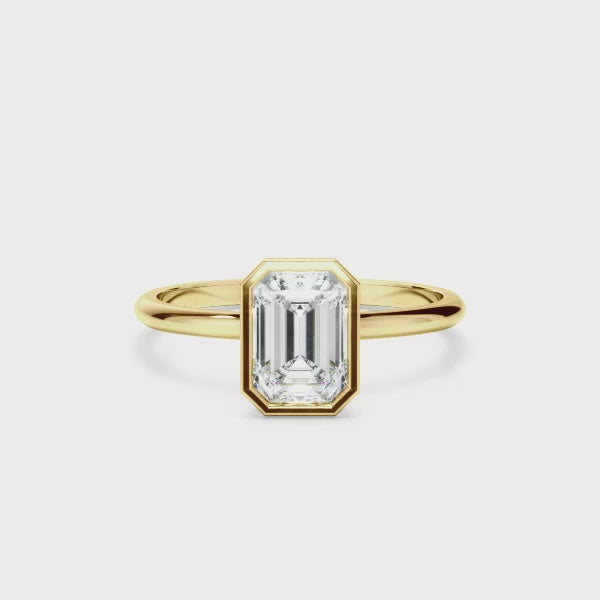 Emerald Cut Diamond Solitaire Bezel Set Engagement Ring