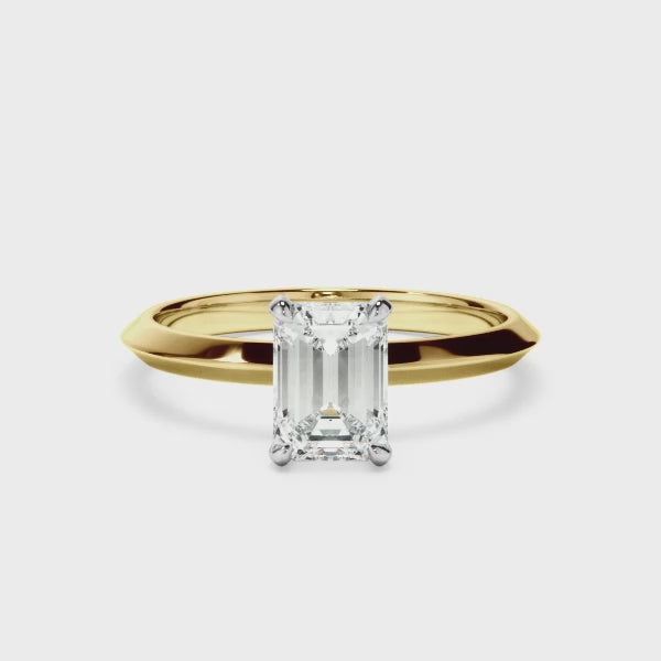 Emerald Cut Diamond Solitaire Knife Edge Engagement Ring
