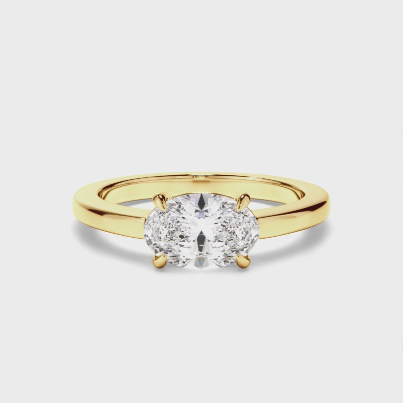 Oval Cut Diamond Solitaire East West Set Engagement Ring