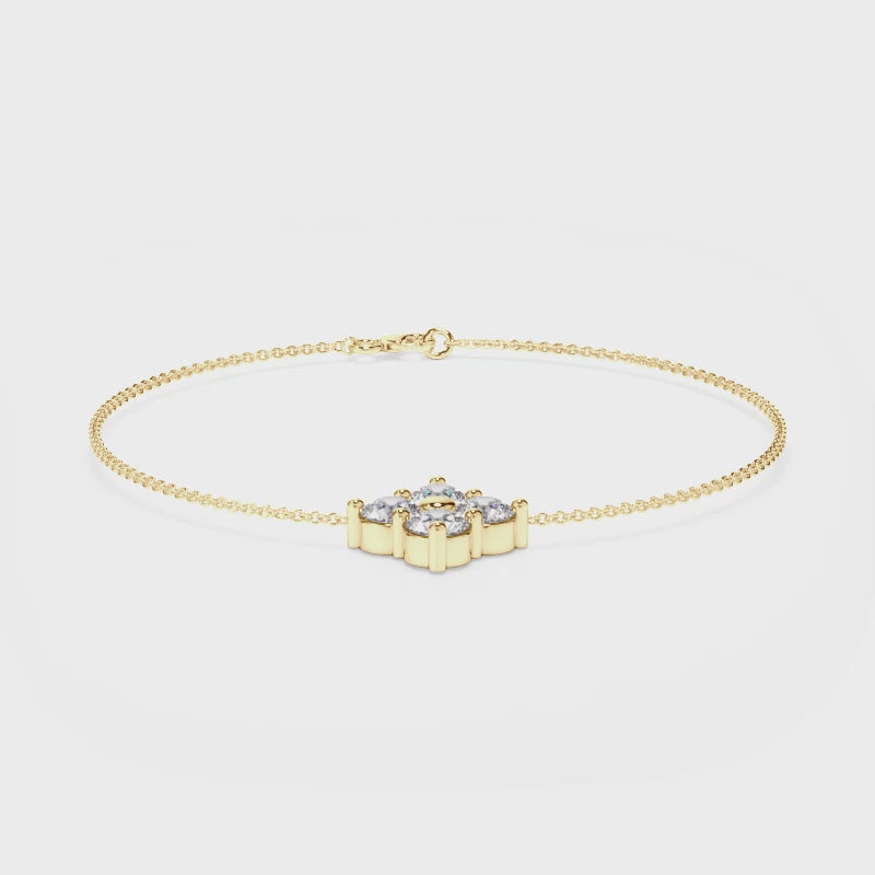 Round Brilliant Cut Natural Mined Diamond Clover Style Bracelet